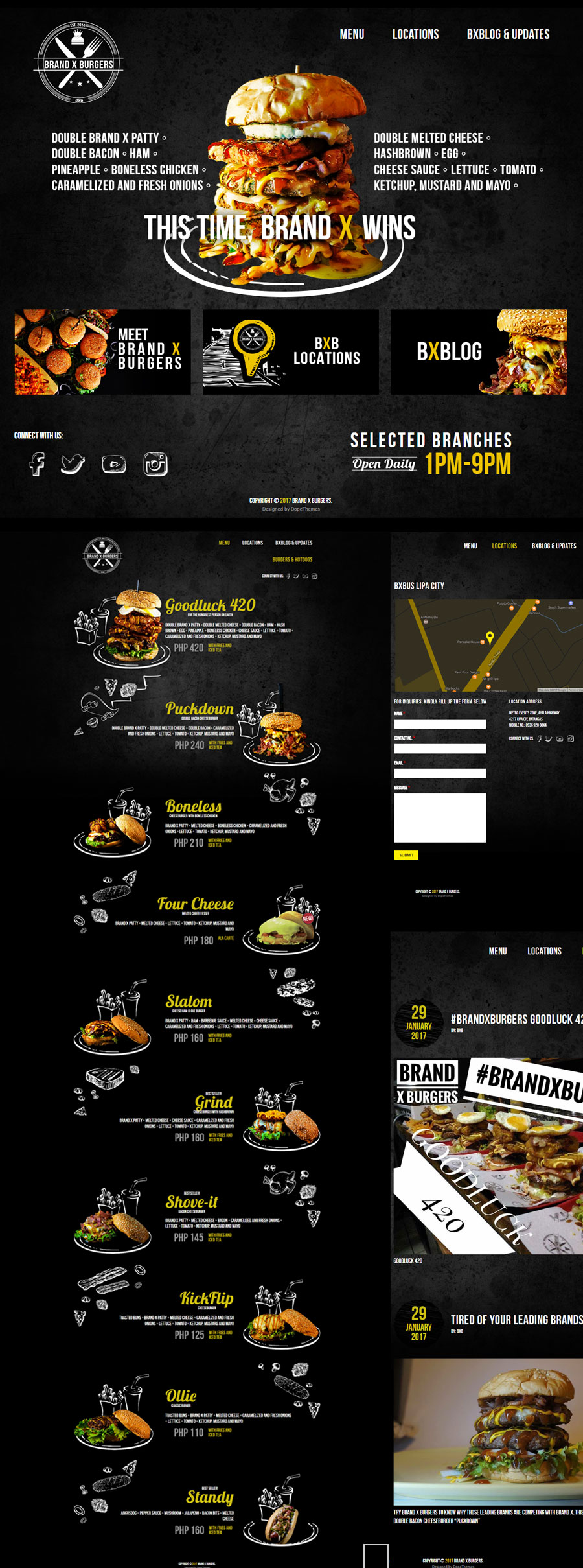 Brand X Burgers carries the slogan "This time brand X wins", The store started to cater customers in a house garage and then turned in to business and today has several branches.