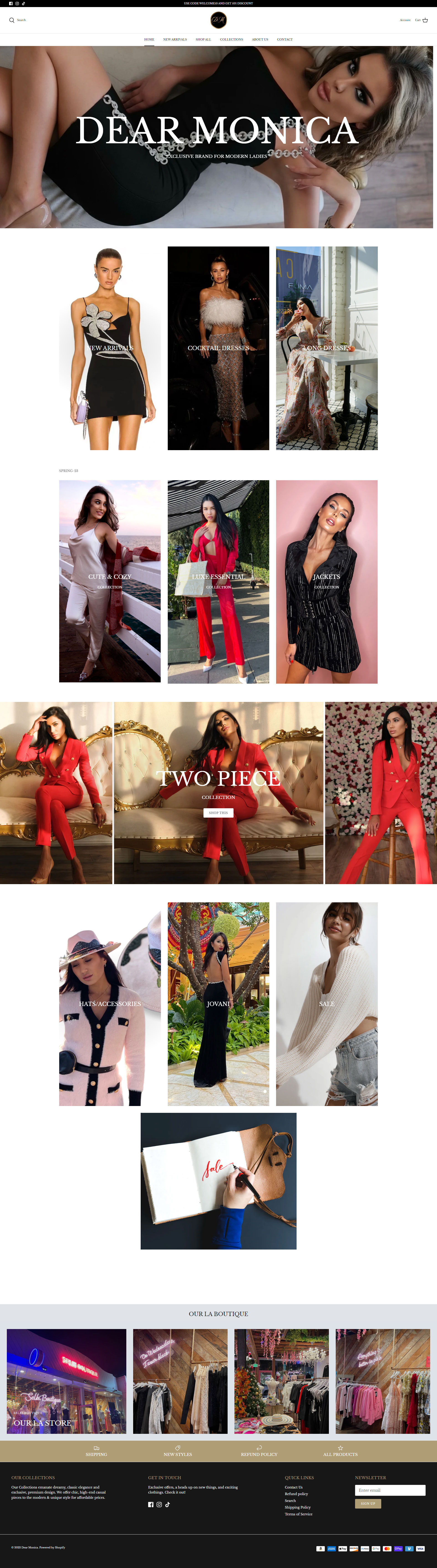 Dear Monica is a retail & online boutique that provides sexy and fashionable clothing for women aged 18-40 who have a taste for a modern-day, independent, feminine, and metrosexual sense of fashion.